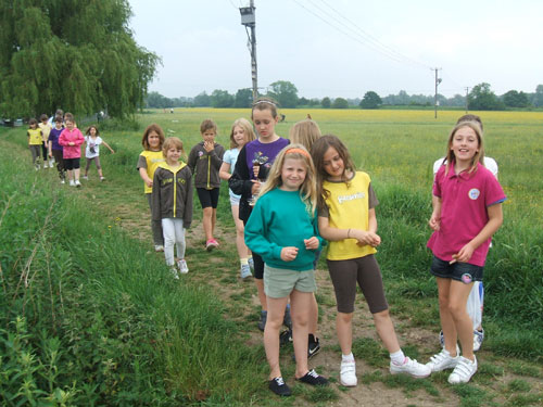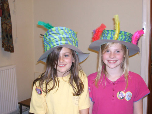 Sixteen Brownies went to Houghton Chapel Centre. Our theme was Alice in Wonderland. The sixes were Cheshire Cats, Caterpillars and Dormice. The Leaders were Alice (Jenni), White Rabbit (Jan), Mad Hatter (Laura), and Queen of Hearts (Amy). We made mad hats and had a Mad Hatter's Tea Party, we decorated "Drink Me" bottles, we played card games and croquet, and we baked jam tarts and cookies. We went on a village photo trail, visited the park and the local shop, and fed the ducks at Houghton Mill. The weather was very hot and sunny.