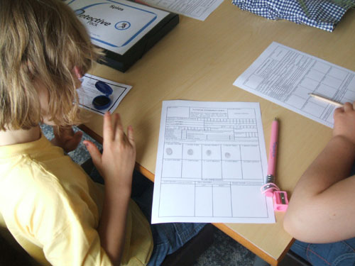 We went to Macqueen House in Twywell, near Kettering for our Brownie Holiday. Our theme was "It's a Mystery?" and the sixes of Spies, Investigators and Codebreakers spent the weekend trying to discover who stole the treasures belonging to Captain Horatio Smith. The leaders were James Bond (Jenni), Sherlock Holmes (Maria), Miss Marple (Jan), Mrs White (Rebecca) and Mrs Peacock (Amy). Activities included fingerprinting, invisible ink messages, spy ID cards, memory games, geocaching, a treasure hunt and finding lots of clues. When the mystery was solved and the treasures were rediscovered, the gems were used to decorate picture frames.
