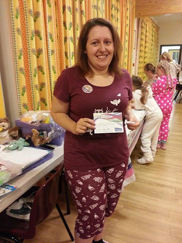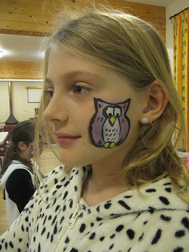 We stayed at the Earth House, Northern Heights near Elstree/Borehamwood for an Owl themed Brownie holiday. The sixes were Sapphire Owls, Emerald Owls and Ruby Owls. The leaders were Sparkle Owl (Jenni), Golden Owl (Jan), Cookie Owl (Lynne), Silver Owl (Maria) and Little Owl (Amy). We did lots of crafts: owl stained glass style decorations; cross-stitched owls; owls from of loom bands, hama beads and toilet rolls; owl magnets and owl bracelets. We enjoyed the out-of-doors: having fun with a wide game based on the Owl & the Pussycat, exploring the woods; going on a ditch walk and playing outdoor games. We had an owl themed cake decorating competition and played bingo. Our last night was an owl themed pyjama party with party food, party games, face painting, nail art, temporary tattoos and balloons. Jenni received her Girlguiding 20 years service award during the party.